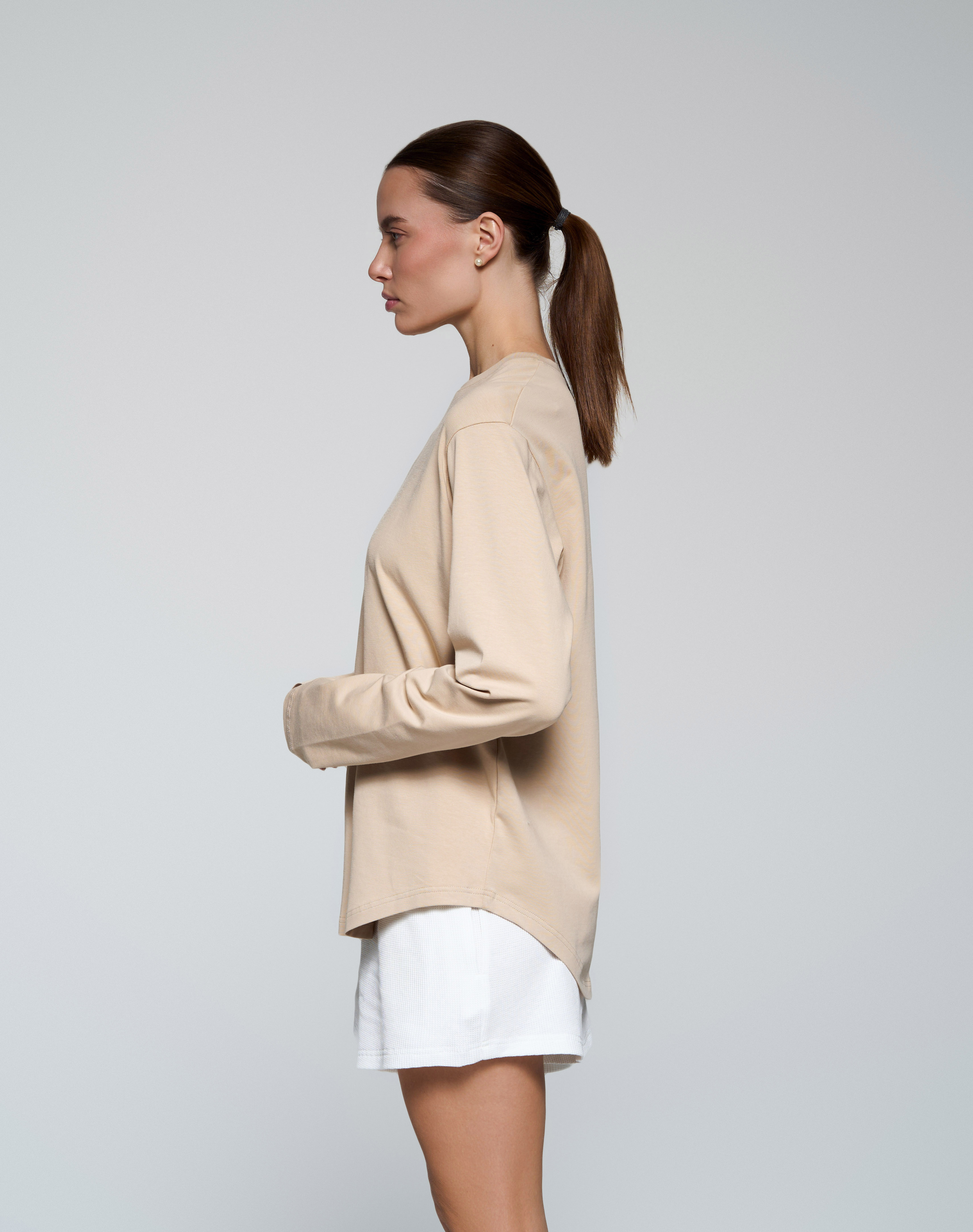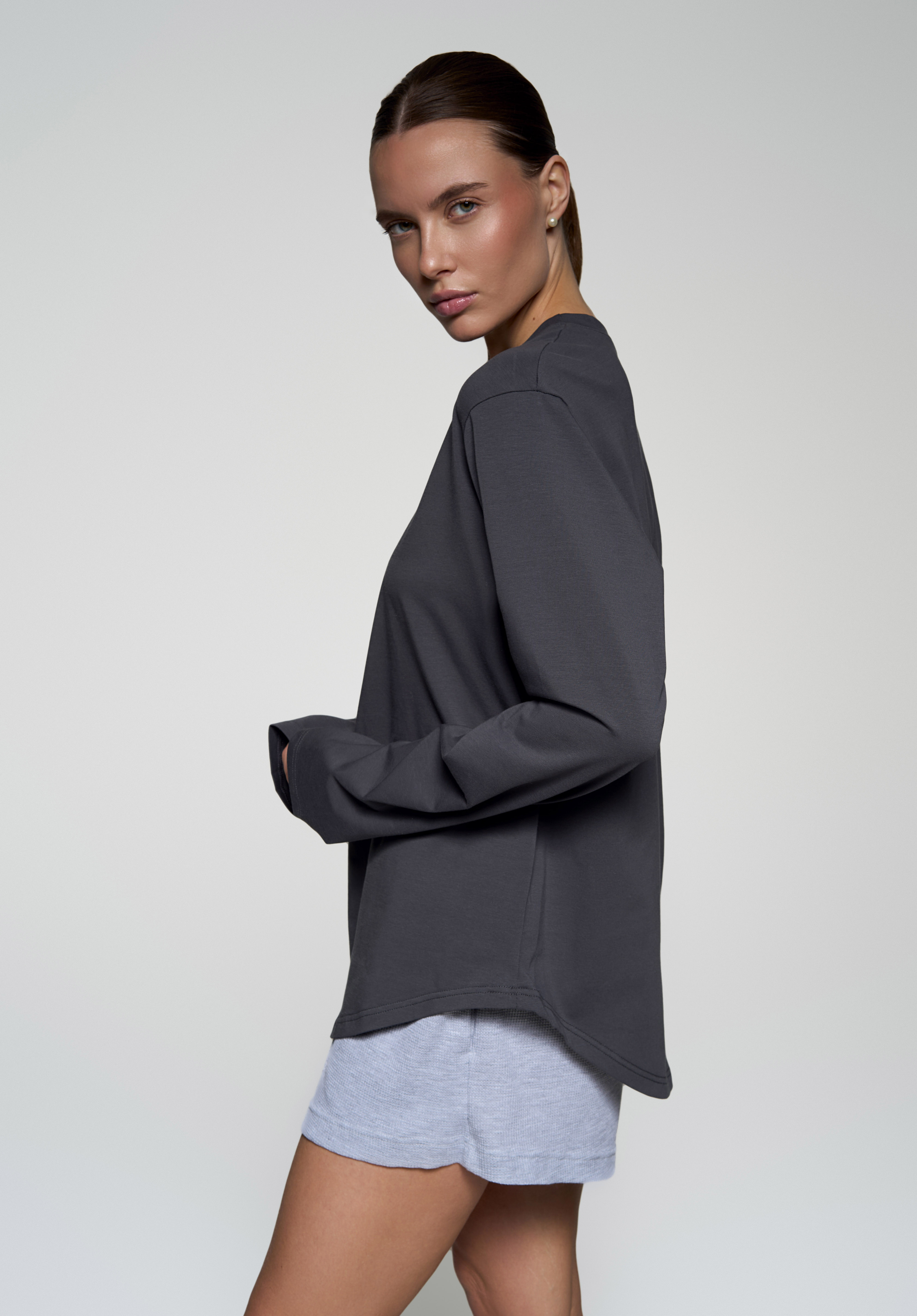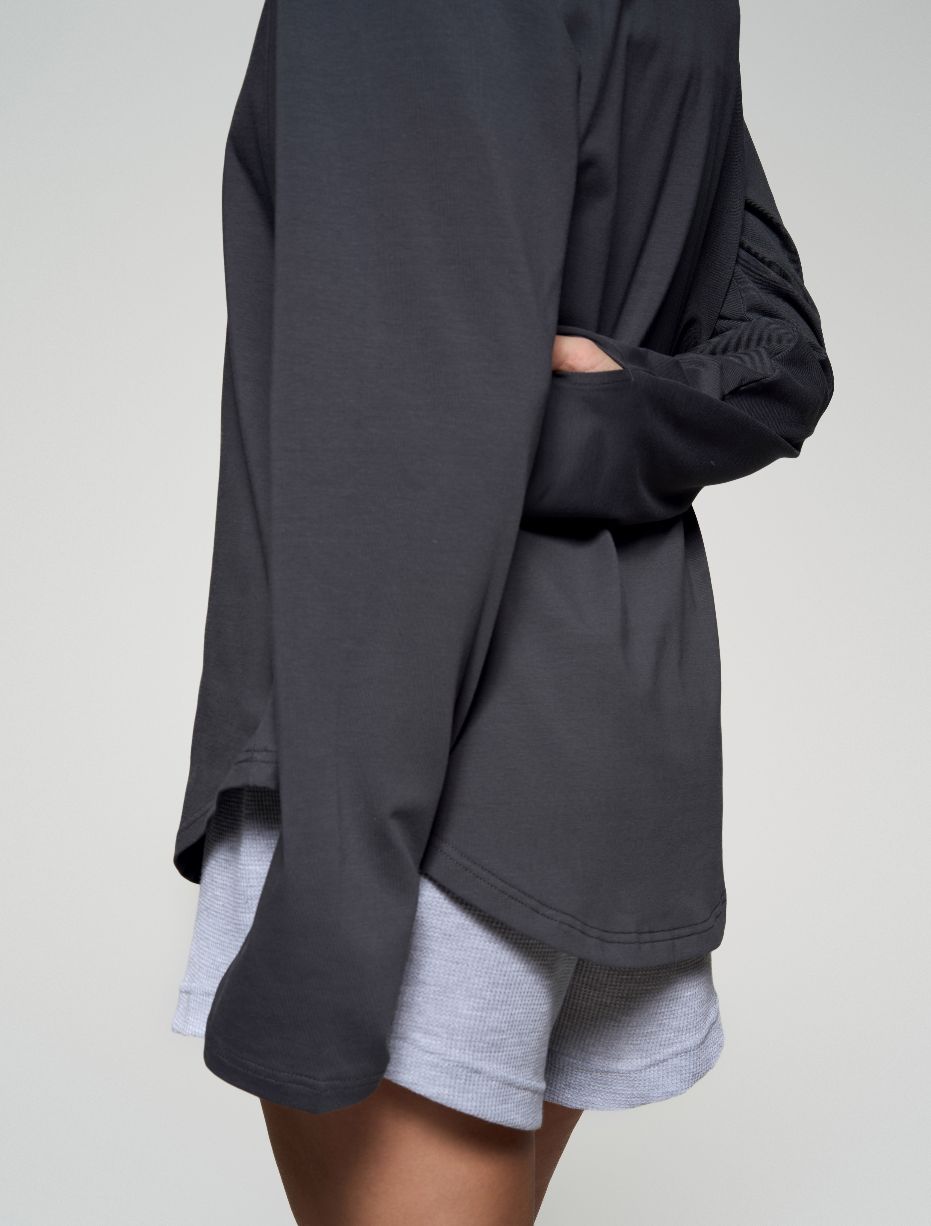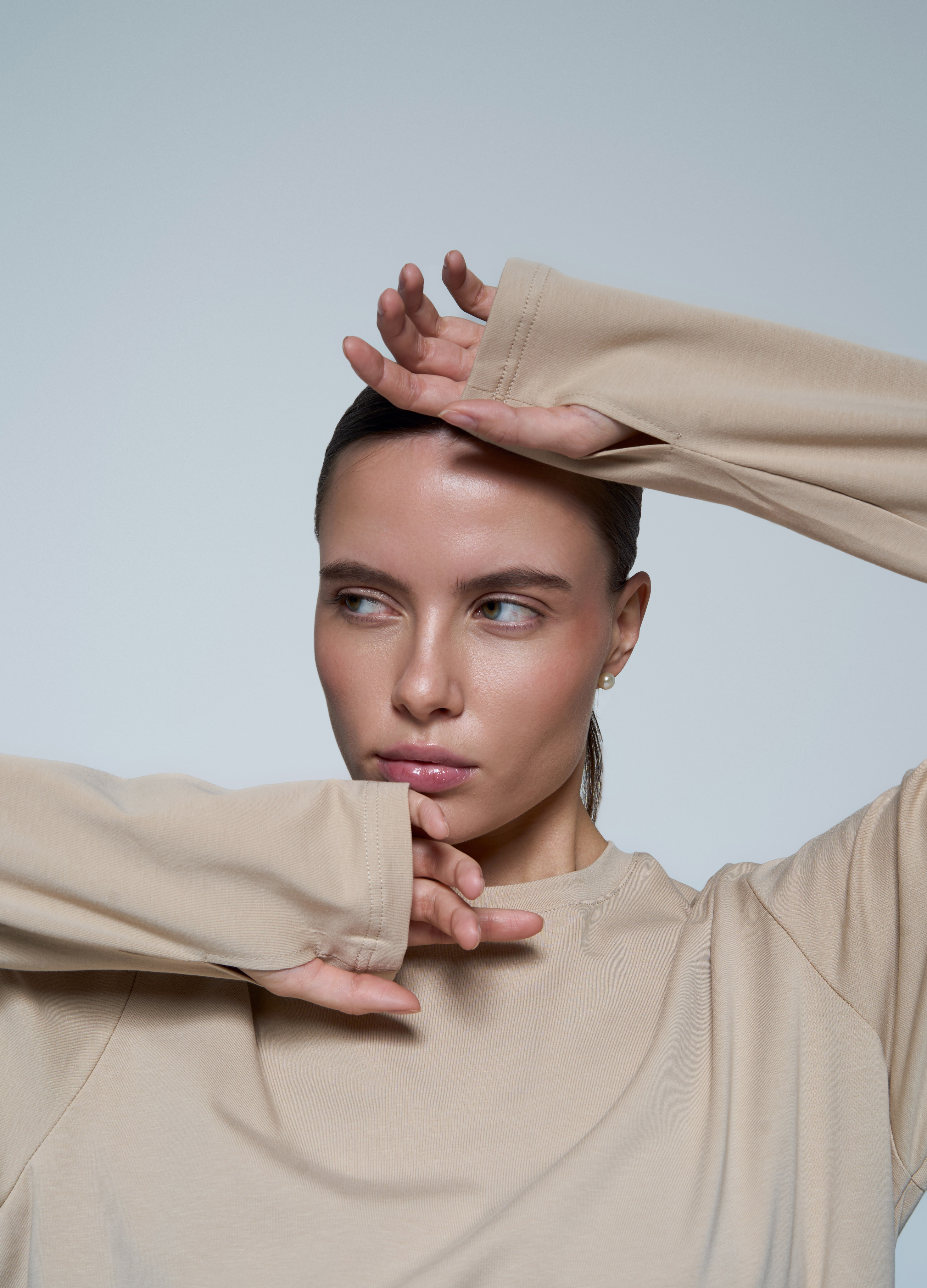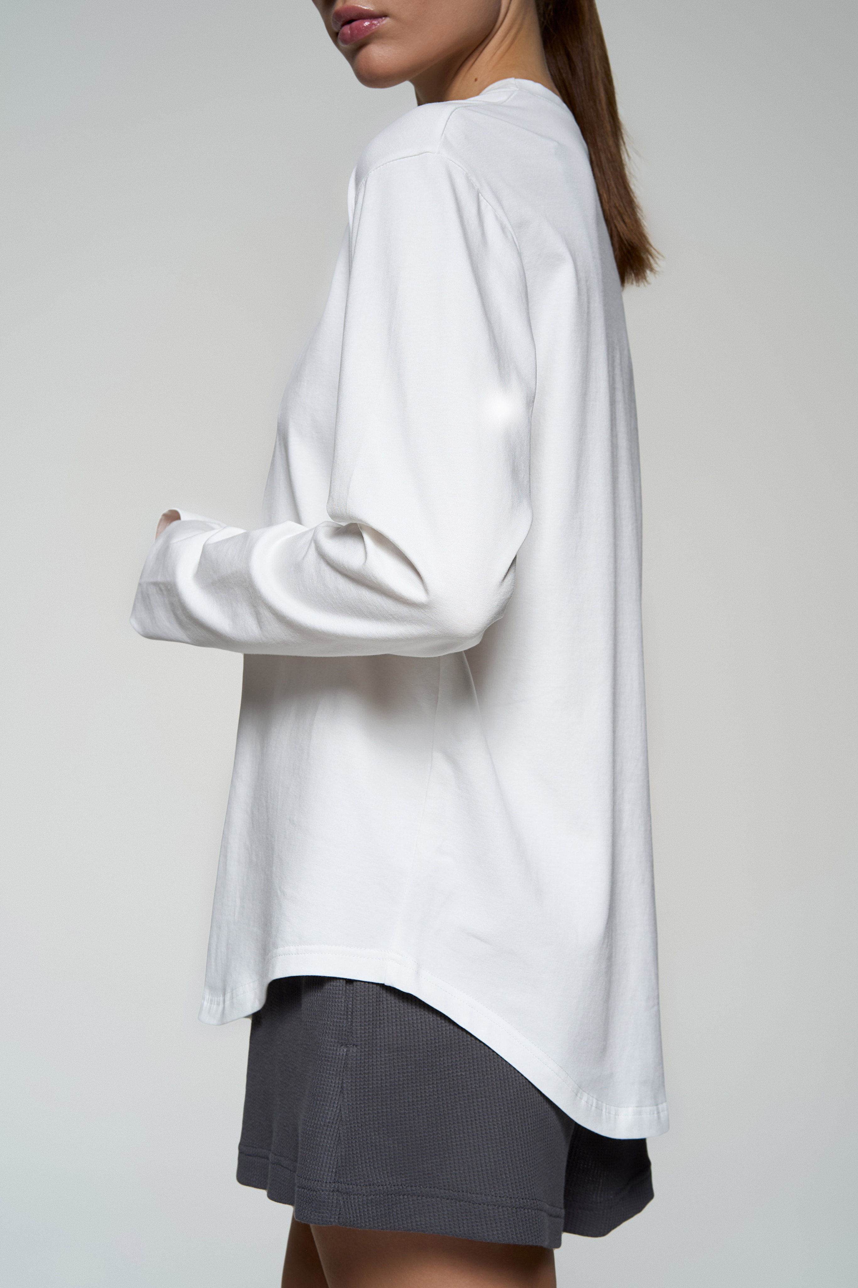 Базовый лонгслив - Прямой крой с плавным низом - Удлиненный рукав с прорезью под палец.
